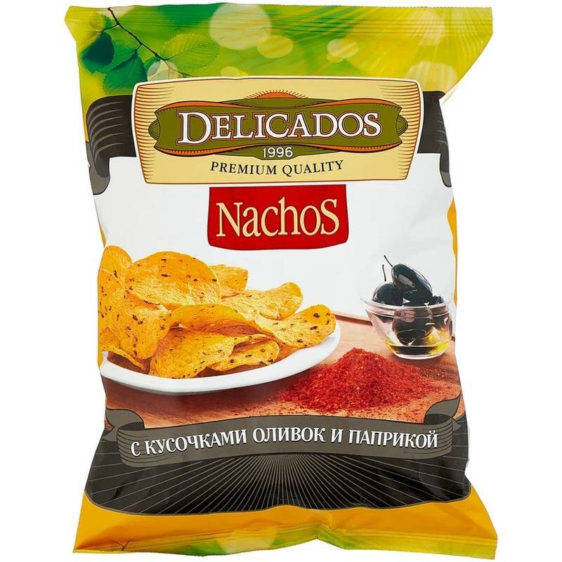 Чипсы кукурузные Delicados Nachos с оливками и паприкой пак 150г