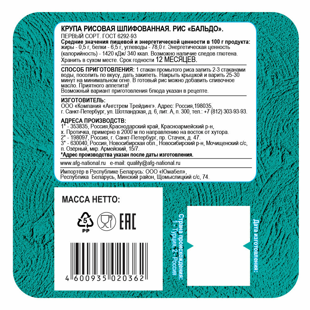 Рис Националь Бальдо 800г интересное: