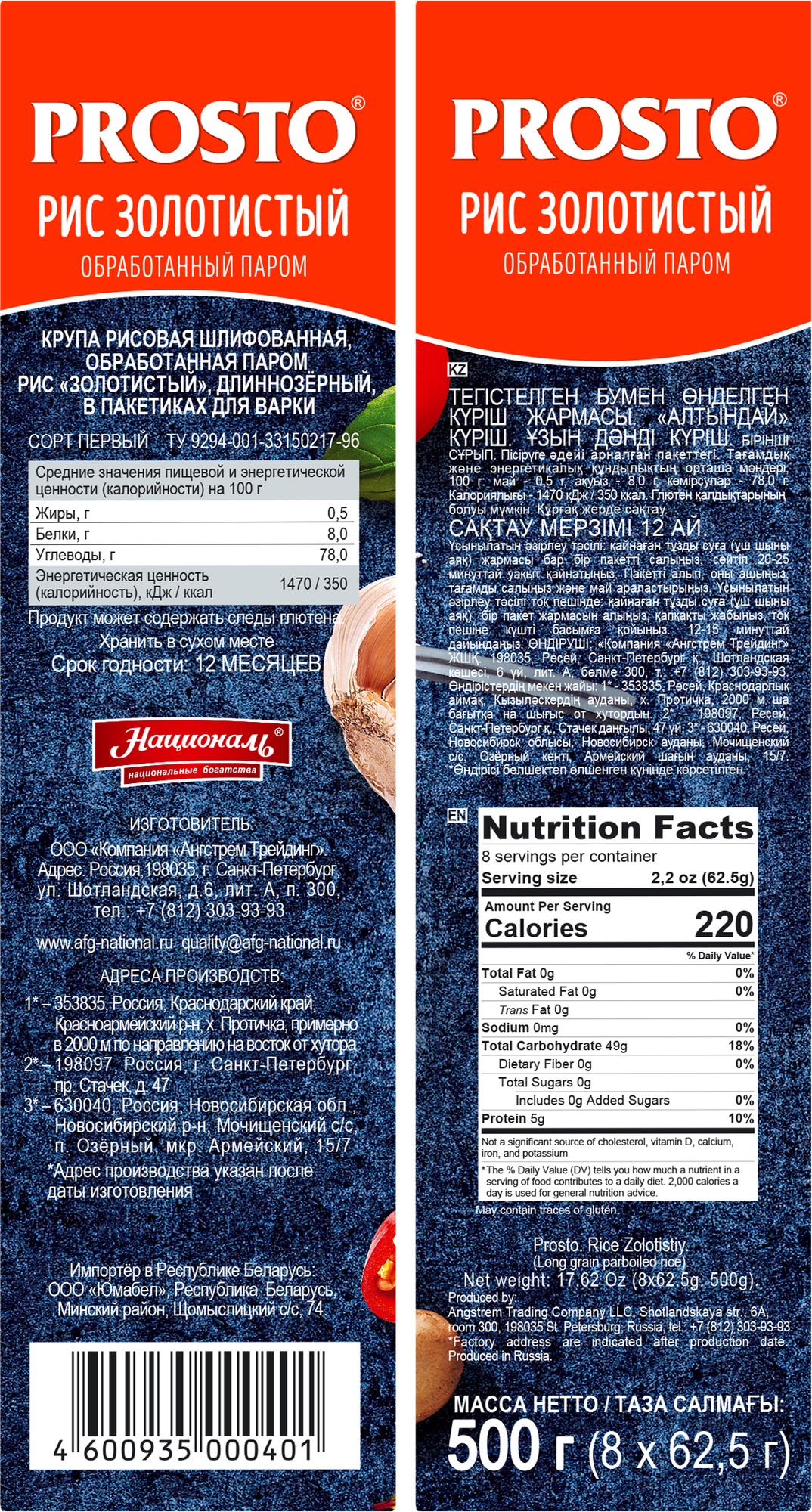 Рис PROSTO Золотистый пропаренный, длиннозерный, в варочных пакетиках, 8 порций, 500 г интересное: