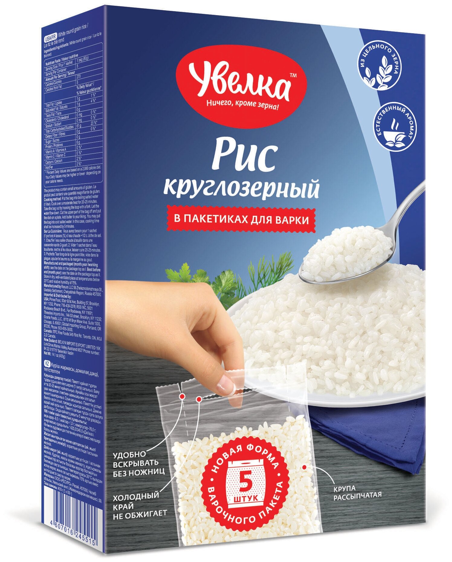 Рис Увелка круглозерный шлифованный в пакетиках для варки, 5х80 г