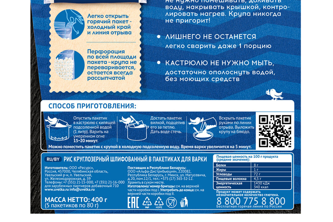 СохранитьРис круглозерный Увелка шлифованный 400г, 5 пакетиков х 80г интересное: