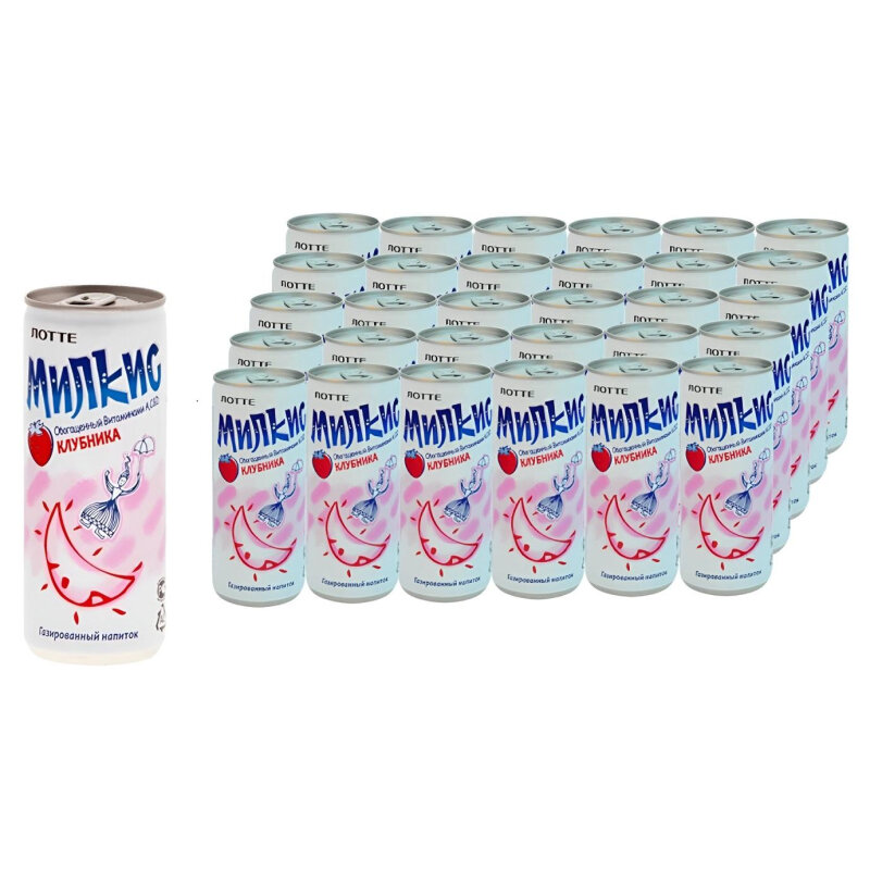 Напиток газированный безалкогольный Milkis (Милкис) со вкусом Клубники / 30 банок по 250 мл.