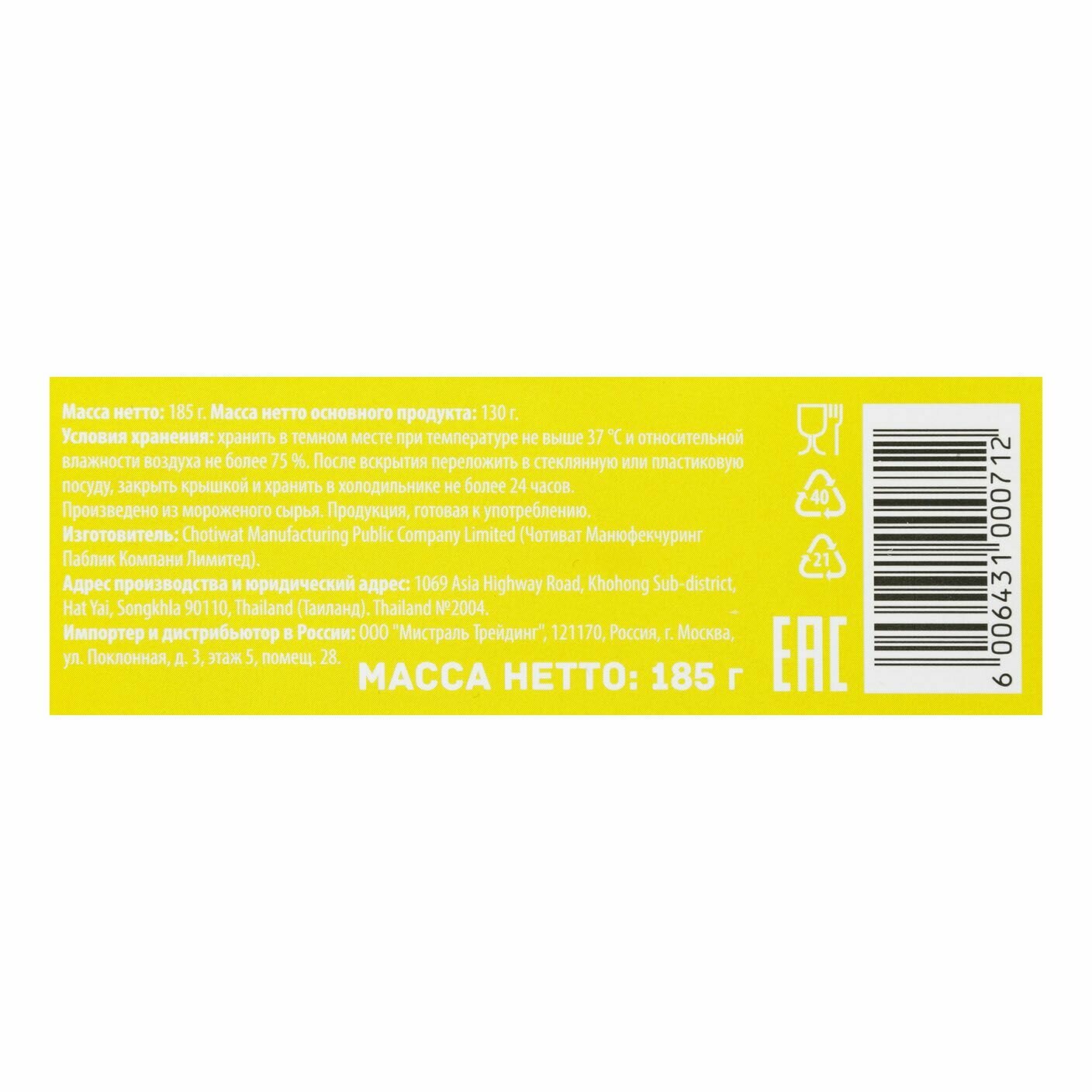 | Вес упаковки | 185 г |