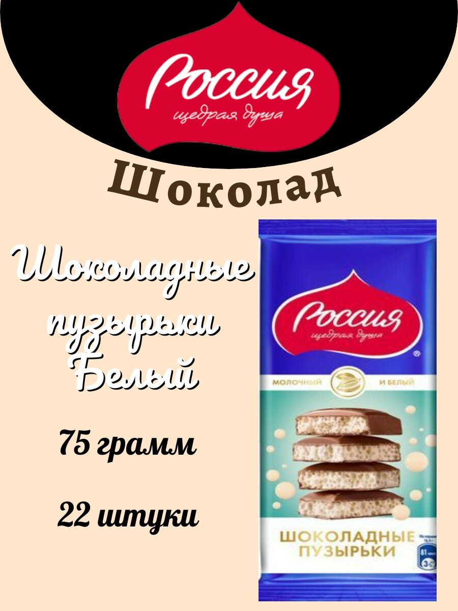 «Россия» - щедрая душа!®. Шоколадные пузырьки. Шоколад молочный и белый пористый 75г.