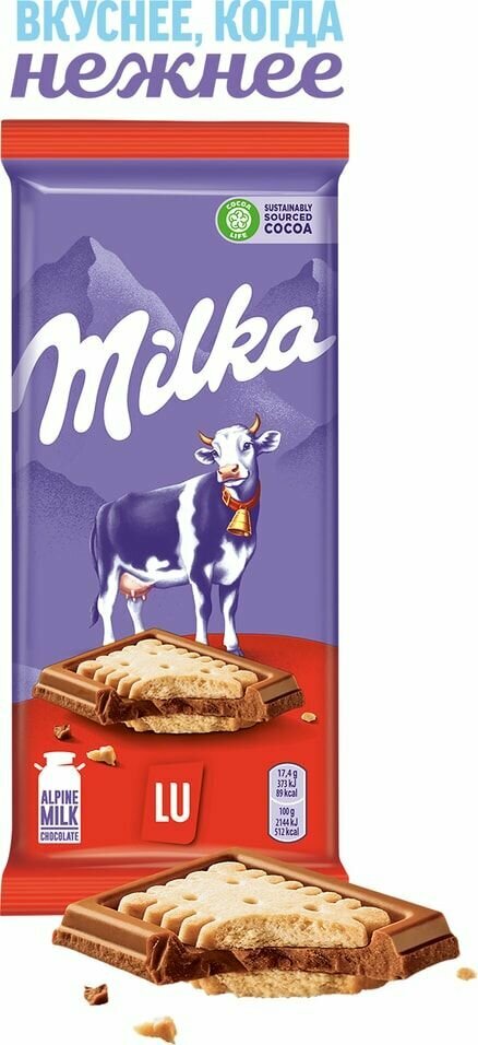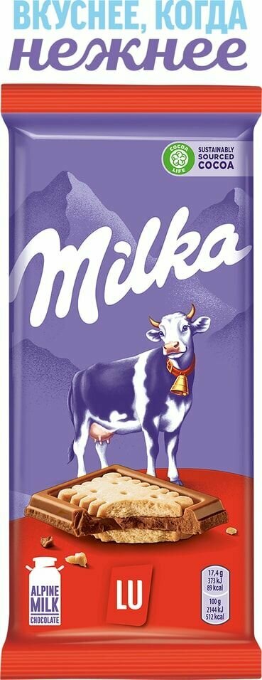 Шоколад молочный MILKA с печеньем Lu, 87г