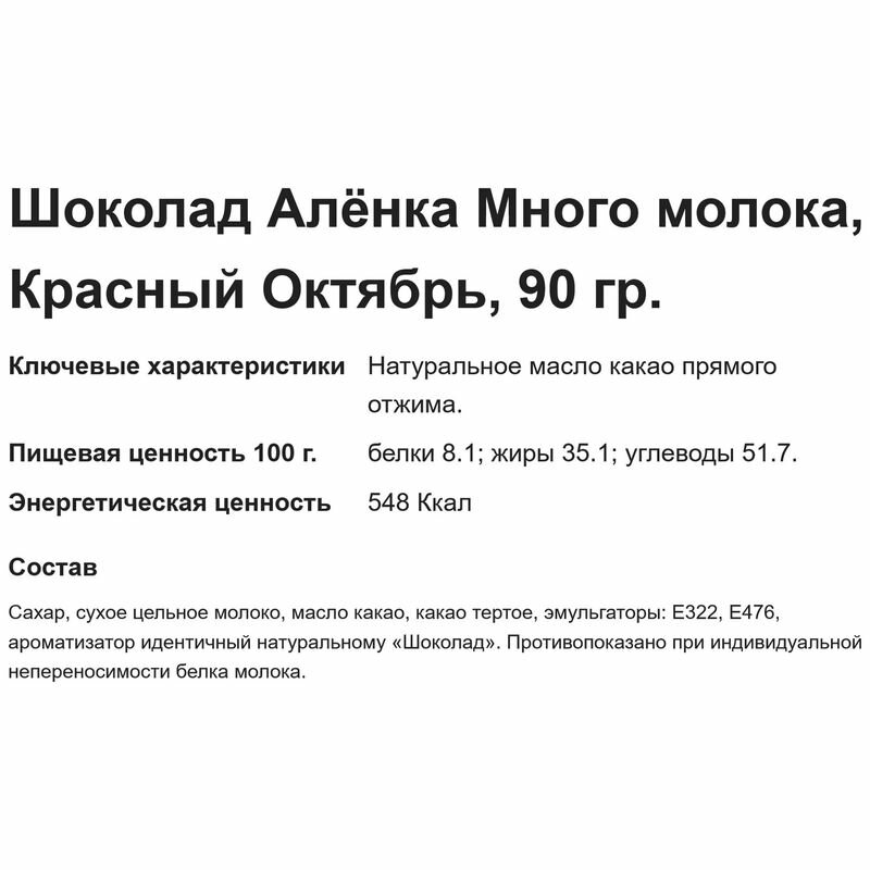 Ниже Вы можете прочитать отзывы на Шоколад Аленка много молока, 90 г, ознакомится с подробными характеристиками, посмотреть интересные обзоры и фотографии на Шоколад Аленка много молока, 90 г.