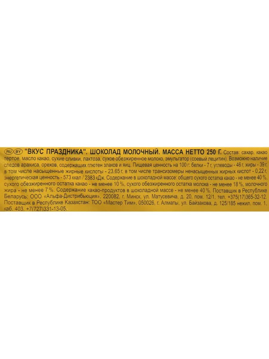 | Вид шоколада | молочный |