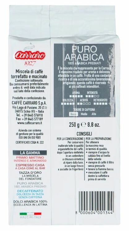 Carraro Arabica 100% кофе молотый, 250 г