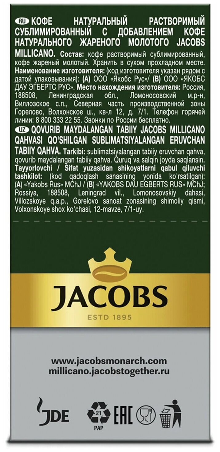 СохранитьКофе Jacobs Milicano молотый в растворимом 26 пакетиков по 1.8 г интересное: