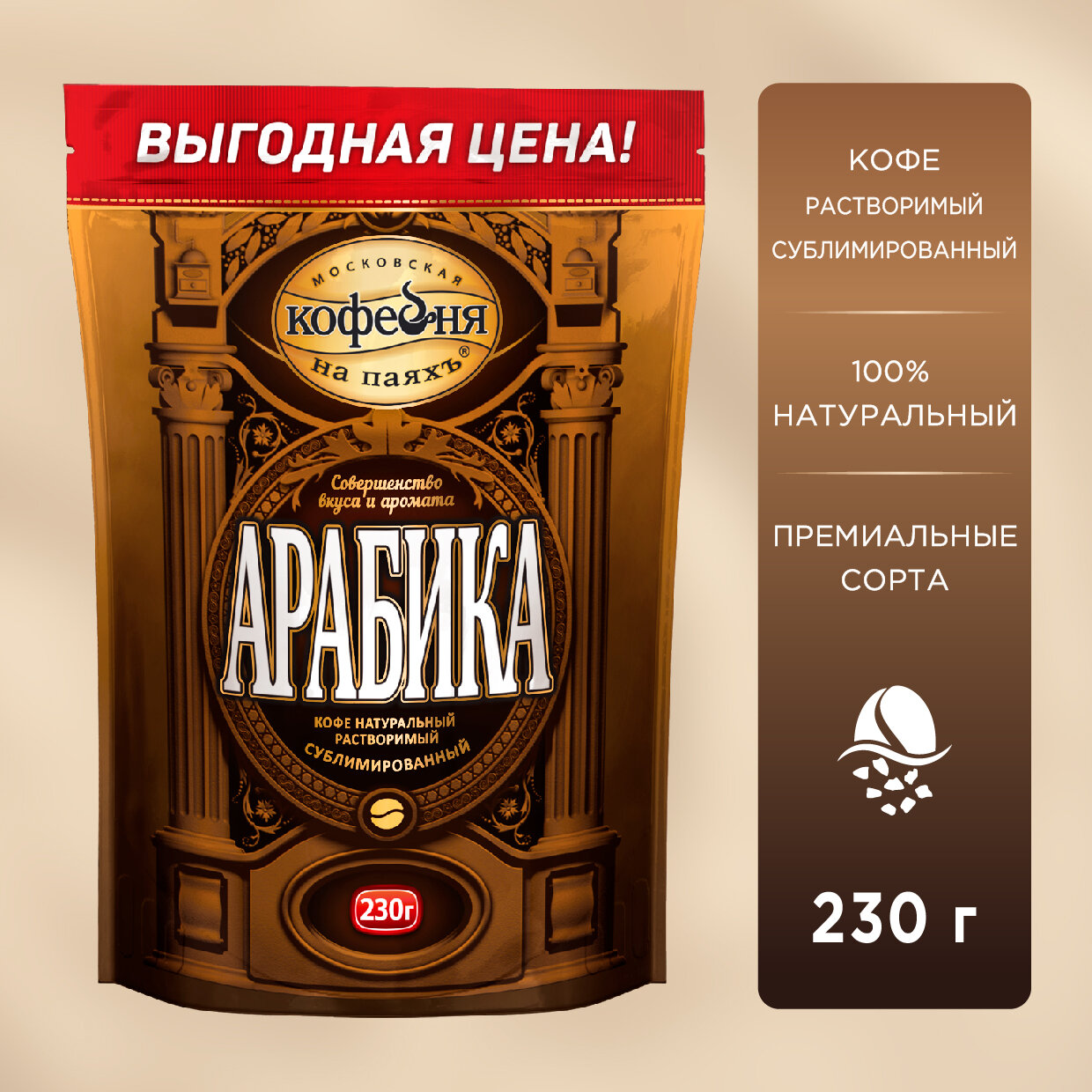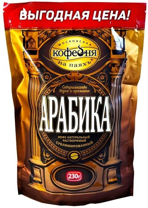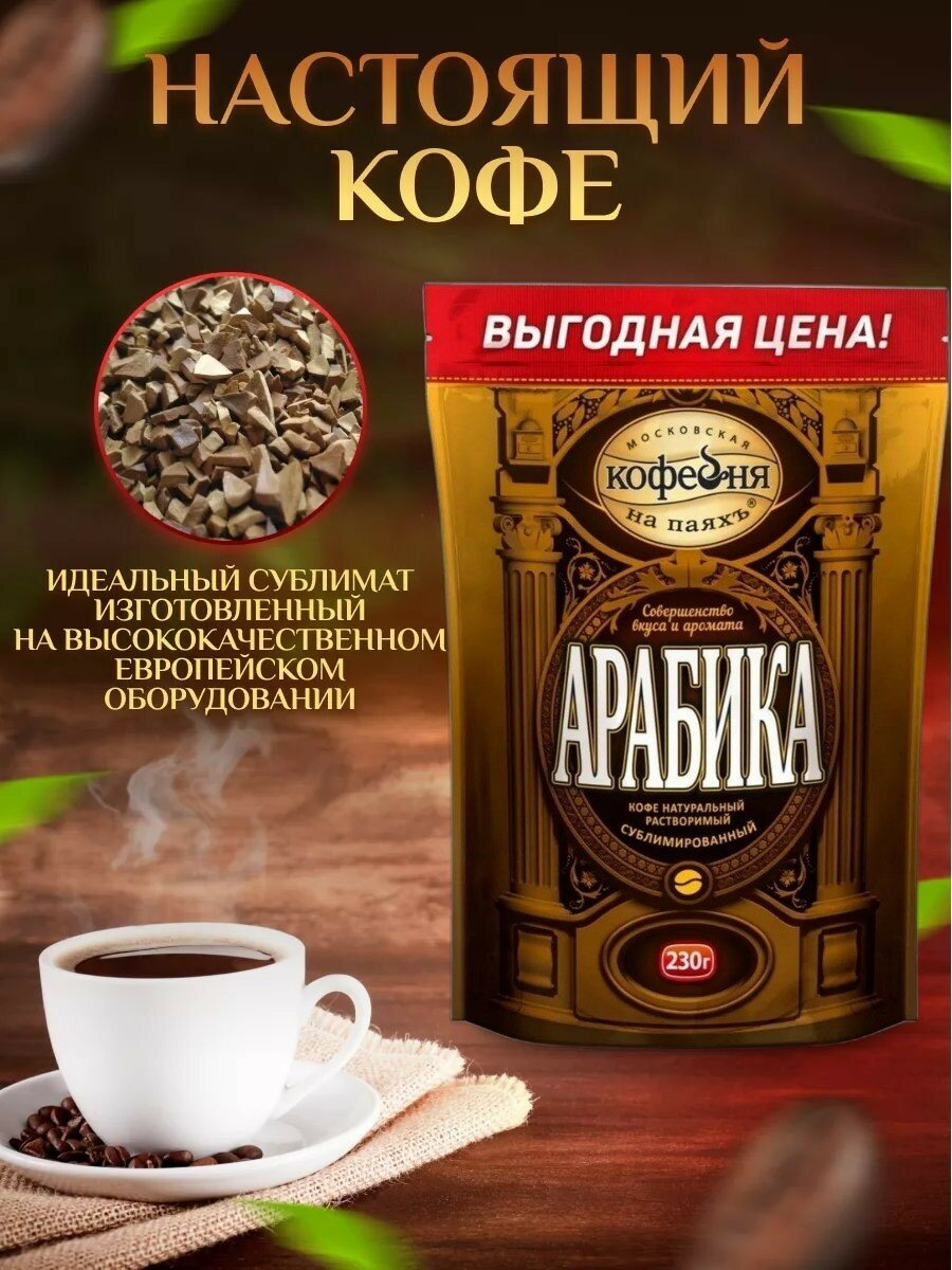 Кофе растворимый московская кофейня на паяхъ "Арабика", сублимированный, 230 г, мягкая упаковка В комплекте: 1шт.