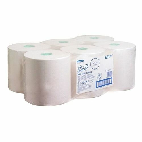 Полотенца бумажные Scott Max белые однослойные 6691 6 рул.