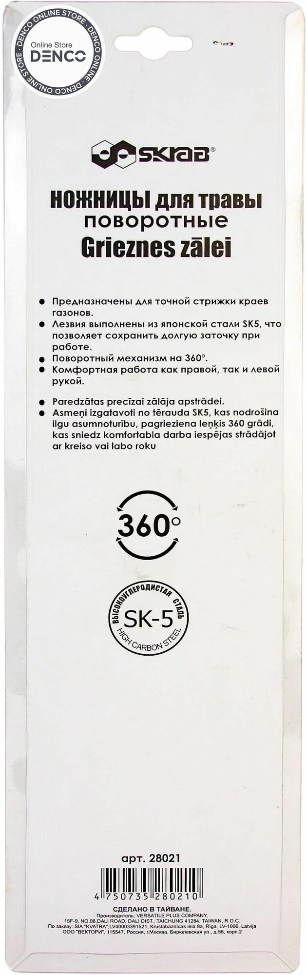 Ножницы для травы SKRAB поворотные 360 SK5 28021 интересное: