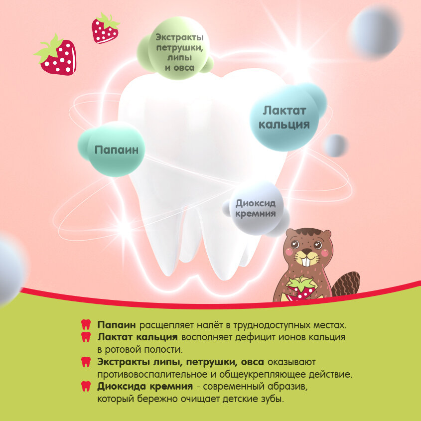 Жемчужная Зубная паста детская со вкусом Клубники от 2-х лет 60мл
