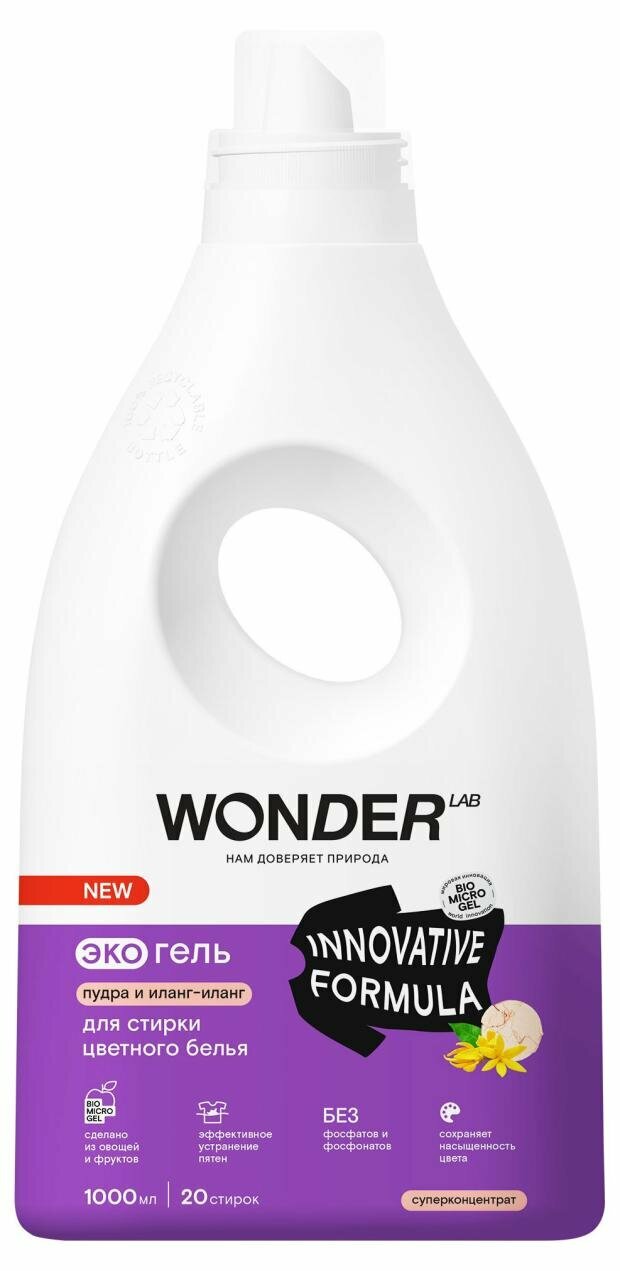 Эко гель для стирки цветного белья и одежды WONDER LAB, 1000 мл, гипоаллергенный гель с ароматом пудры и иланг-иланг