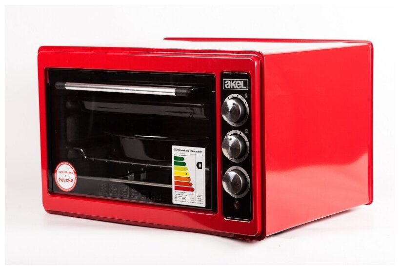 Электродуховка AKEL AF-740 (36 л, красная, 2 противня, ТЭН повышенной мощности, гриль, таймер, терморегулятор)