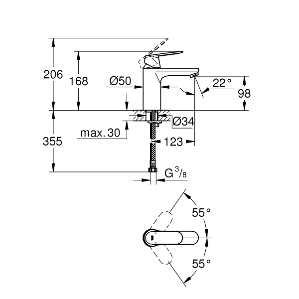 Смеситель для раковины без донного клапана Grohe Eurosmart Cosmopolitan 23327KW0