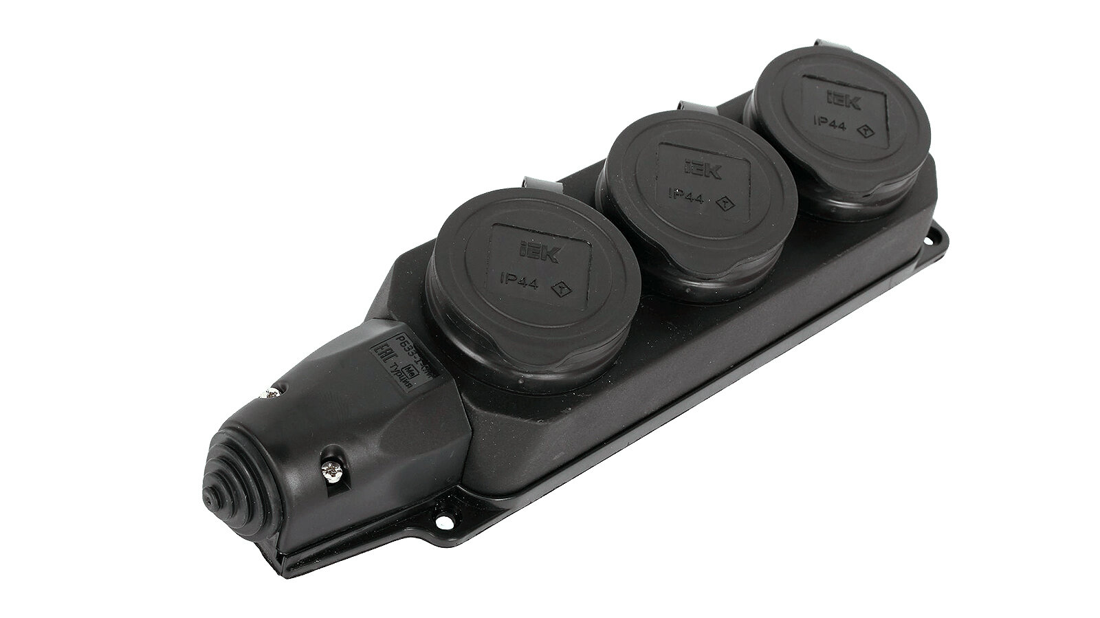 Power Socket / Розетка каучук тройная с защитными крышками IP44 омега (PKR61-016-2-K02) IEK