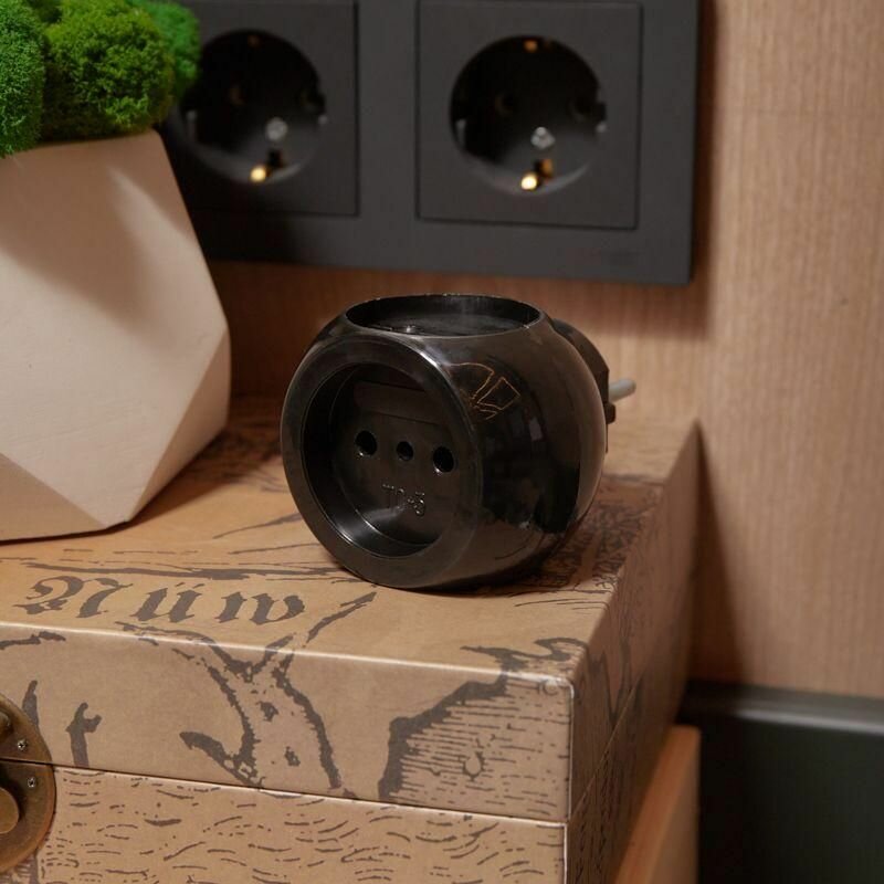 Тройник электрический REXANT "Шар" 220 В, 6 А, черный