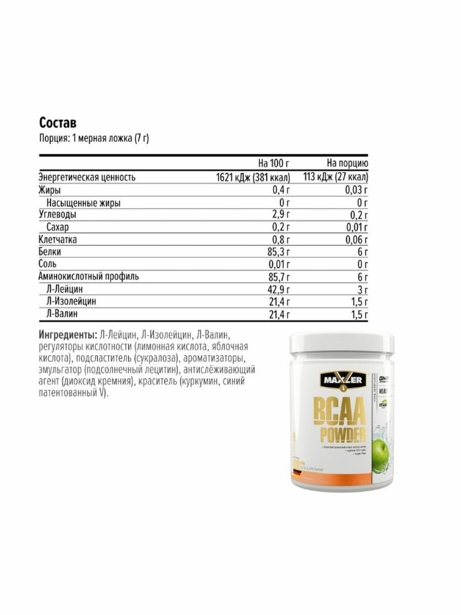 Ниже Вы можете прочитать отзывы на Maxler BCAA Powder 420 гр (зеленое яблоко), ознакомится с подробными характеристиками, посмотреть интересные обзоры и фотографии на Maxler BCAA Powder 420 гр (зеленое яблоко).
