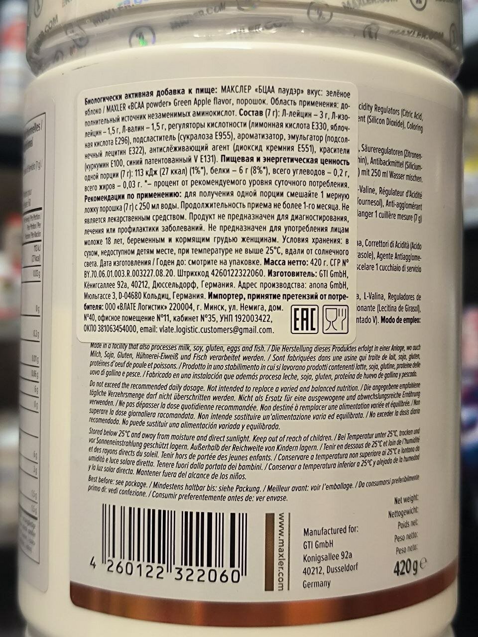 СохранитьMaxler BCAA Powder 420 гр (зеленое яблоко) интересное:
