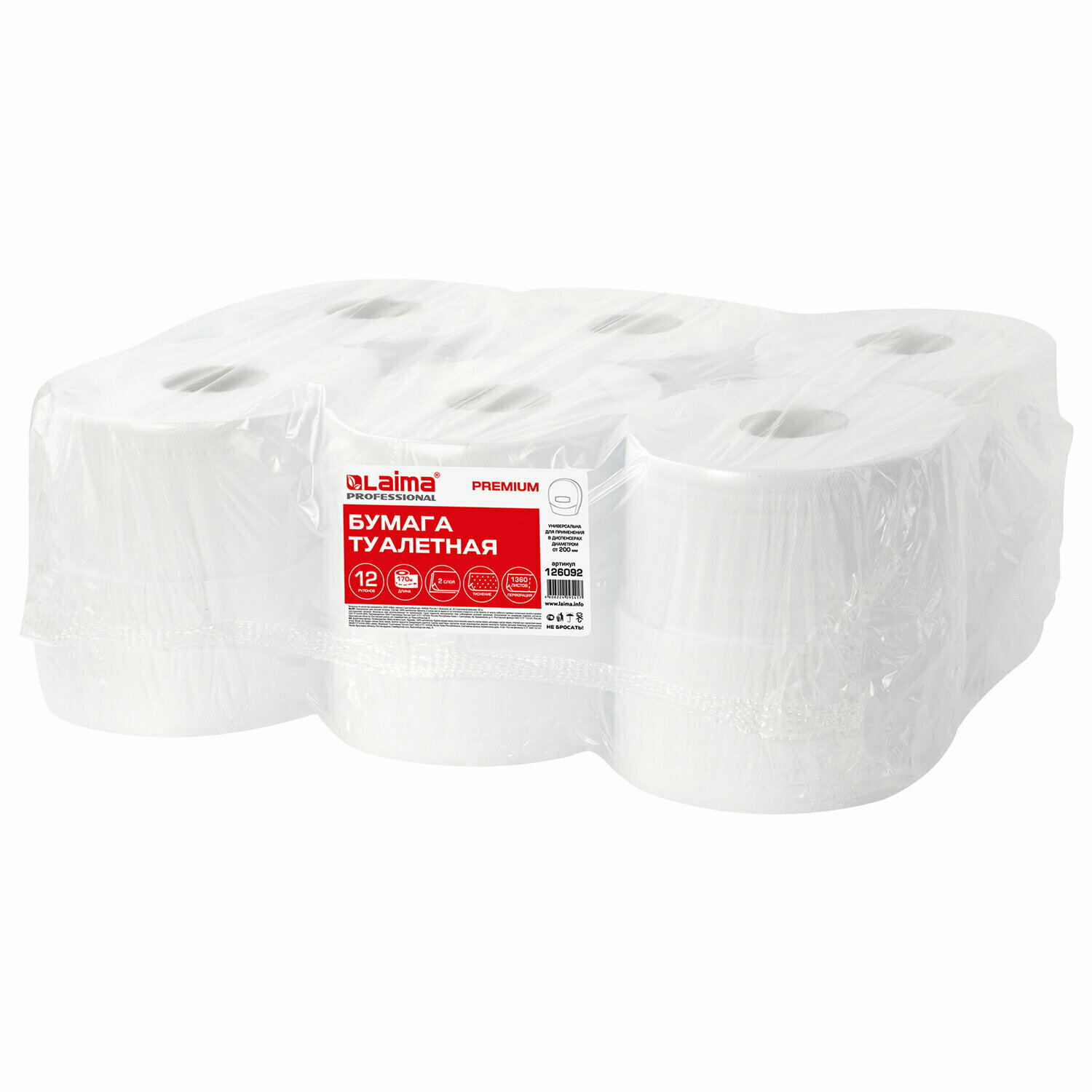 Бумага туалетная 170 м, LAIMA (T2), PREMIUM, 2-слойная, цвет белый, комплект 12 рулонов, 126092