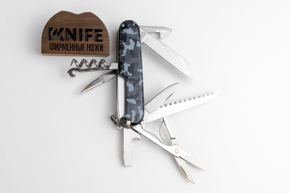 Нож перочинный VICTORINOX Huntsman Navy Camouflage, 91 мм, 15 функций, серо-синий камуфляж, 1.3713.942