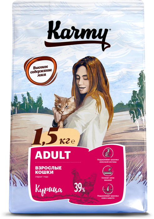 Karmy Сухой корм для взрослых кошек старше 1 года с курицей 73303 | Karmy Adult 1,5 кг 41965 (2 шт)
