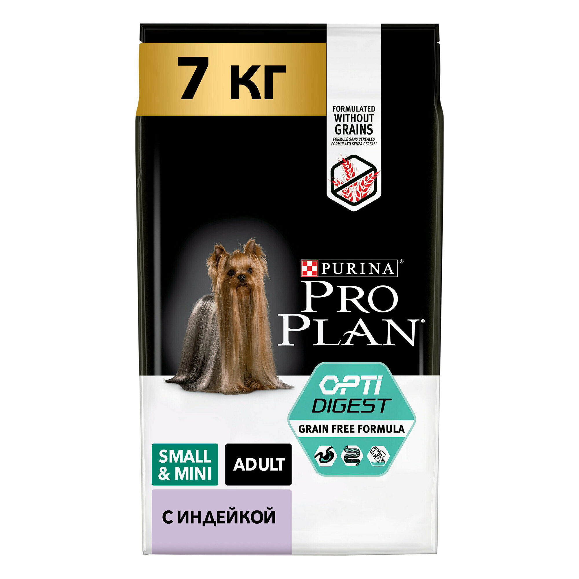 Корм PRO PLAN Small & Mini OPTI DIGEST (комплекс для поддержания здорового пищеварения) (беззерновой) для собак малых и миниатюрных пород с чувствительным пищеварением, с индейкой, 7 кг