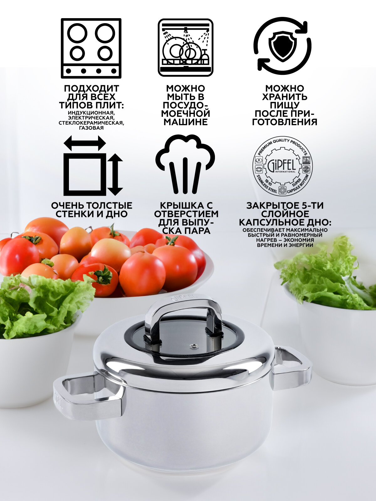 Кастрюля из нержавеющей стали Gipfel Aventus 1396 18 см/2 л интересное: