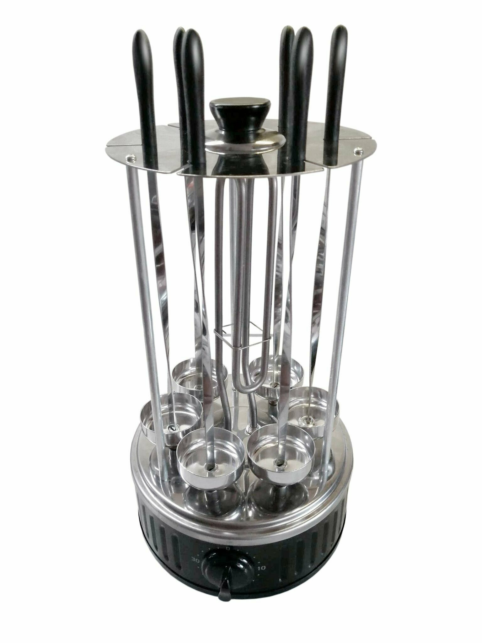 | Плюсы: | Вращаются шампуры, есть таймер и отключение нагревателя |