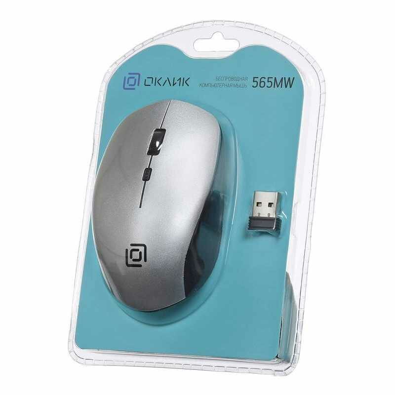 Мышь Oklick 565MW glossy, оптическая, беспроводная, USB, черный и серебристый [1103661]