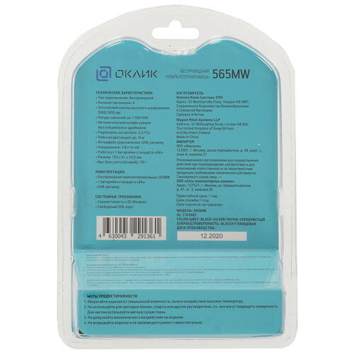 Мышь Оклик 565MW glossy черный/серебристый 1103661
