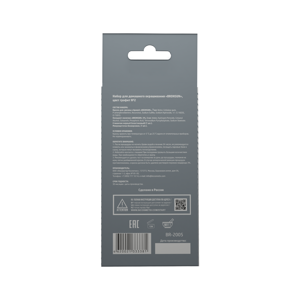 Набор для домашнего окрашивания BRONSUN (Бронсан), цвет графит #2