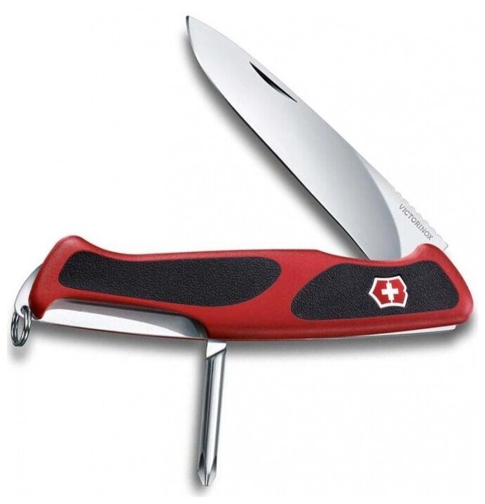 Нож VICTORINOX RangerGrip 53, 130 мм, 5 функций, с фиксатором лезвия, красный с чёрным
