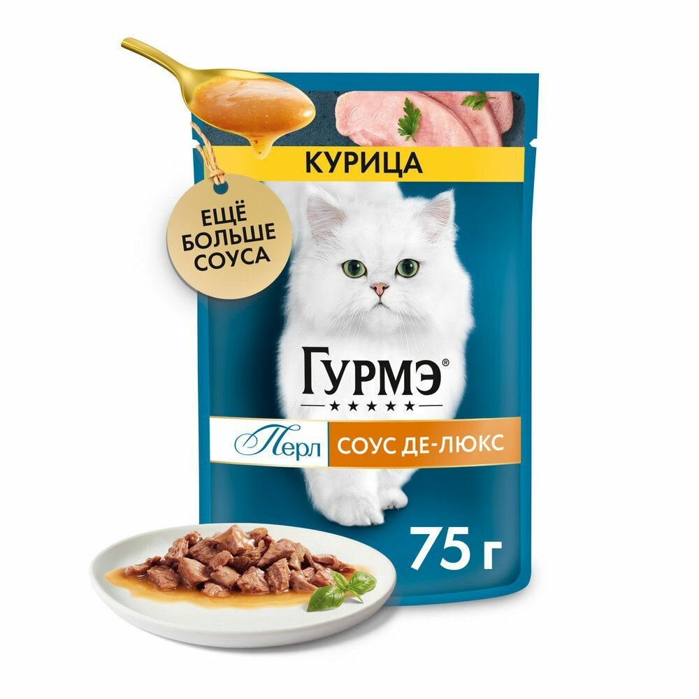 Влажный корм для кошек Гурмэ Перл соус де-люкс, с курицей 26 шт. х 75 г (кусочки в соусе)
