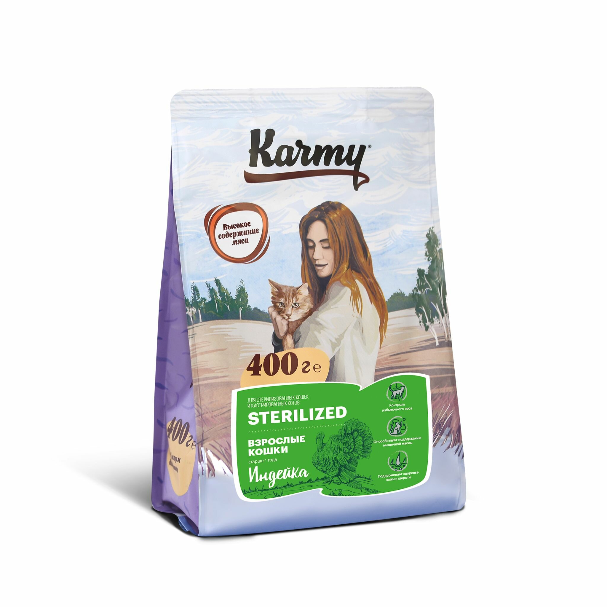 Karmy Sterilized Корм для стерилизованных кошек и кастрированных котов с Индейкой, 400 г