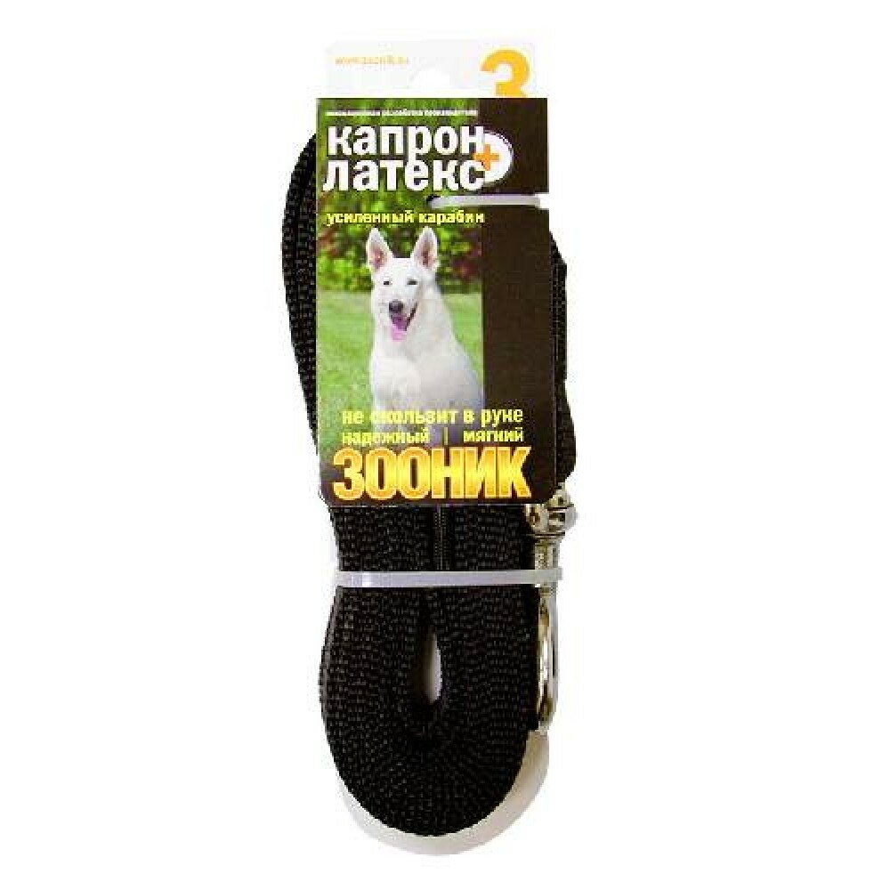 Зооник Поводок капроновый с двойной латексной нитью 3м* 25мм (с усиленным карабином) Черный