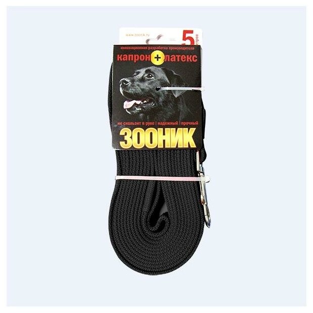 Поводок (Зооник) 5м*20мм, капрон с латексной нитью, черный