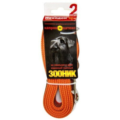 Поводок зооник капроновый с латексной нитью оранжевый для собак (2 м/20 мм)
