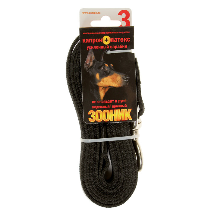 Поводок (Зооник) 3м* 25мм, капрон с латексной нитью, с усиленным карабином, черный