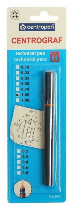 Рапидограф Centropen 9070, линия 1.0 мм, блистер 6253142