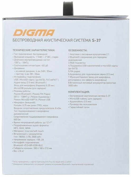 Ниже Вы можете прочитать отзывы на Колонка портативная Digma, 30Вт, черный, ознакомится с подробными характеристиками, посмотреть интересные обзоры и фотографии на Колонка портативная Digma, 30Вт, черный.