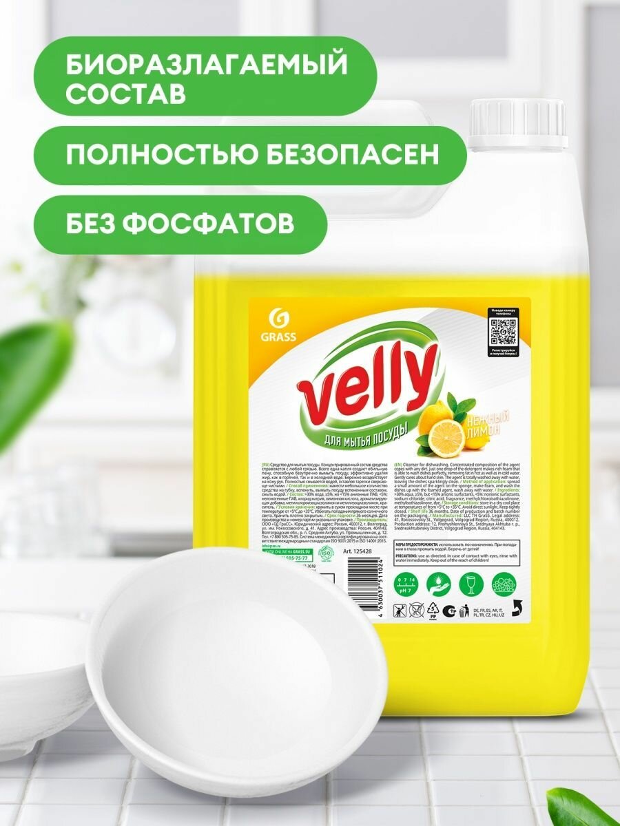 Средство Для Мытья Посуды Velly Лимон (5л) Grass GraSS арт. 125428
