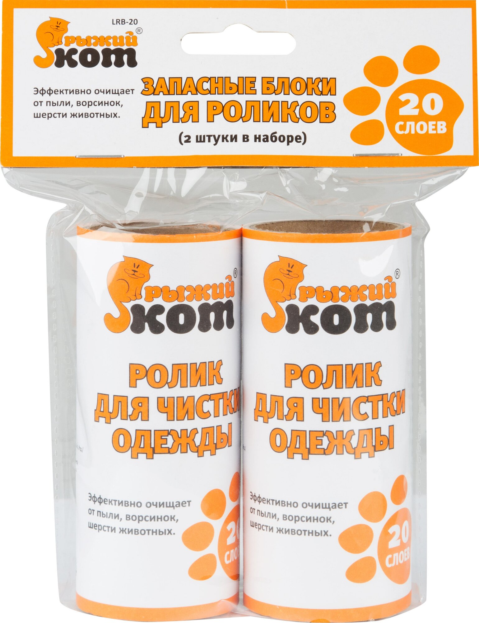 Купить Рыжий кот запасной блок LRB-20 для ролика, 2 шт по 20 слоев, белый/оранжевый