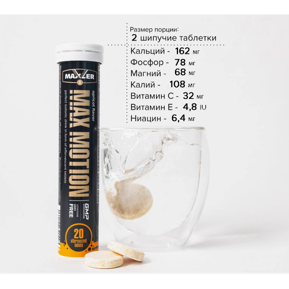 Изотонический напиток Max Motion 20 шип.табл 1 туба (Maxler) Абрикос
