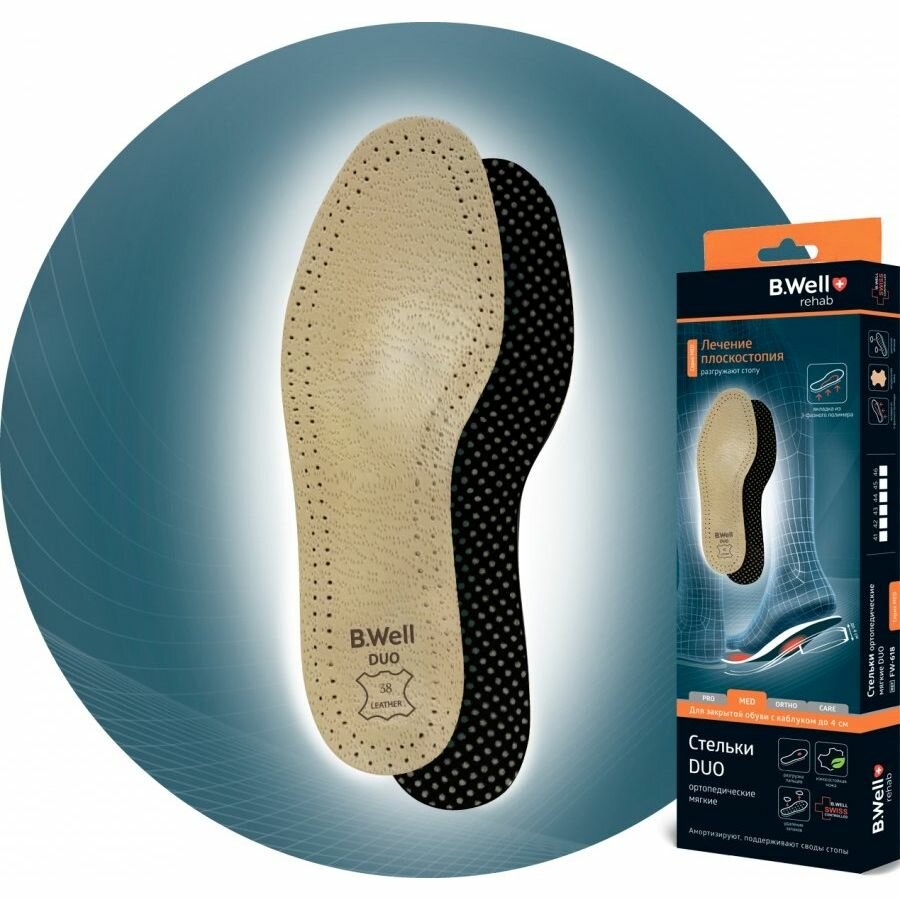 Стельки ортопедические B.Well rehab DUO FW-618 мягкие, кожа, размер 38