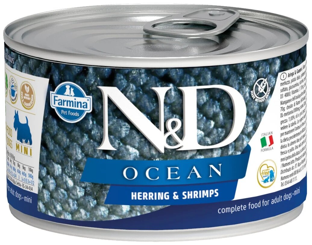 Корм консервированный Farmina N&D Ocean для собак мелких пород с сельдью и креветками, 140 г, 1 шт.