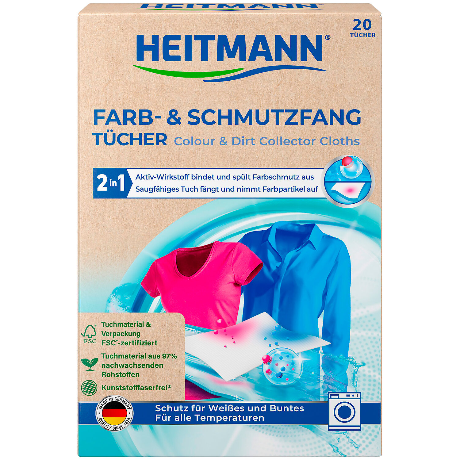 Heitmann салфетки для предотвращения случайной окраски при машинной стирке, картонная пачка, 20 шт.