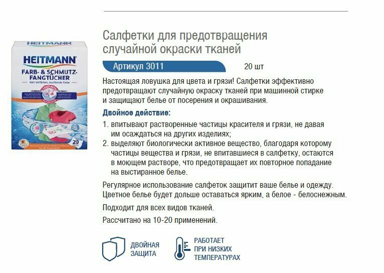 СохранитьHeitmann салфетки против окрашивания при стирке 20 шт интересное: