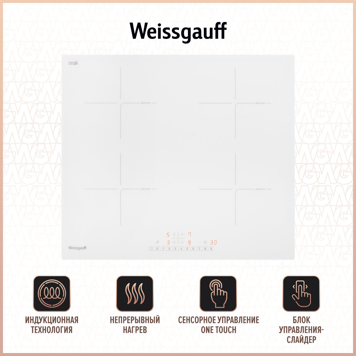Индукционная варочная панель с инвертором и слайдером Weissgauff HI 640 GSC,3 года гарантии, дизайн конфорок Glide Zone, 58 см ширина